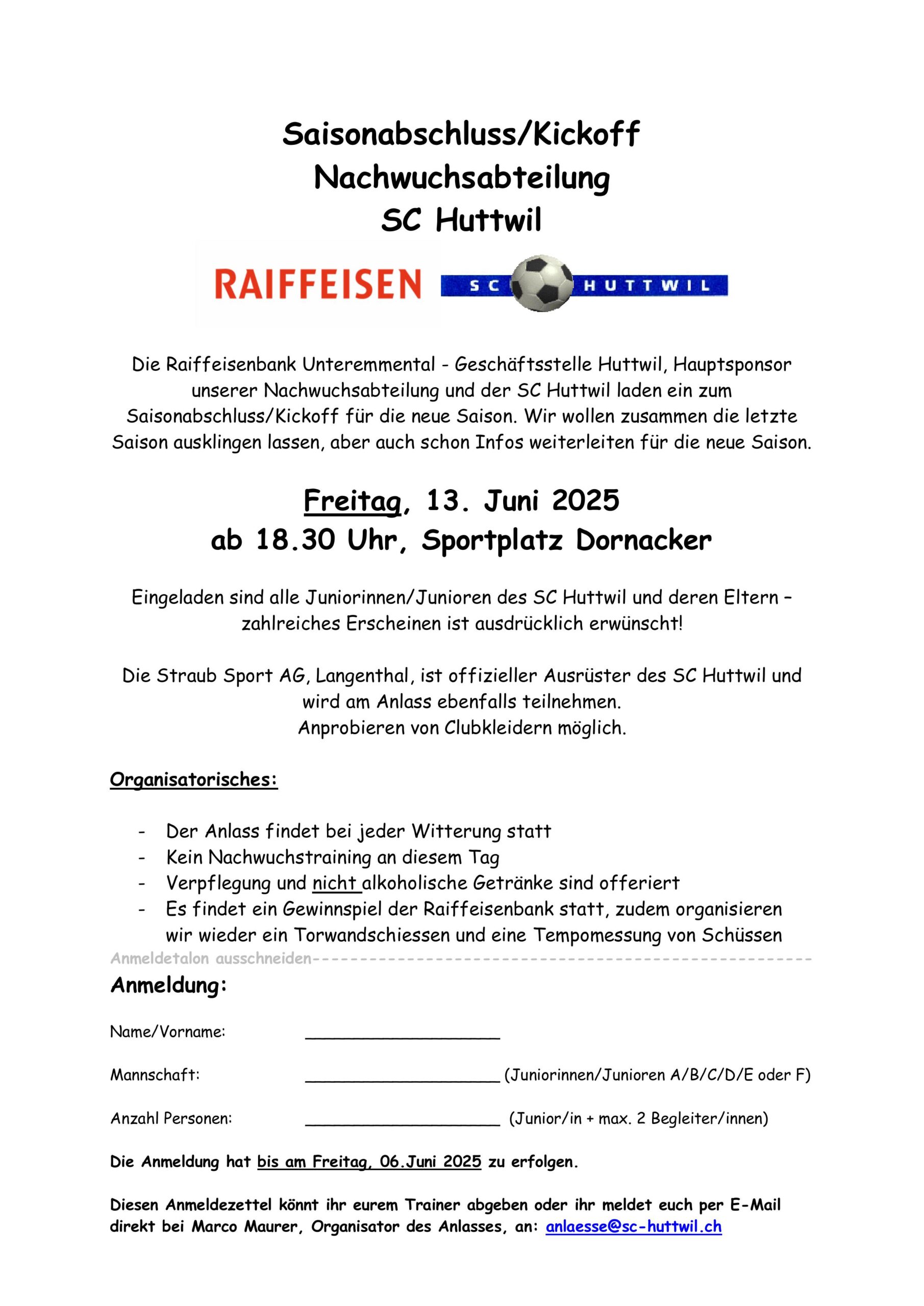 Anmeldeschluss ist der Freitag, 06. Juni!